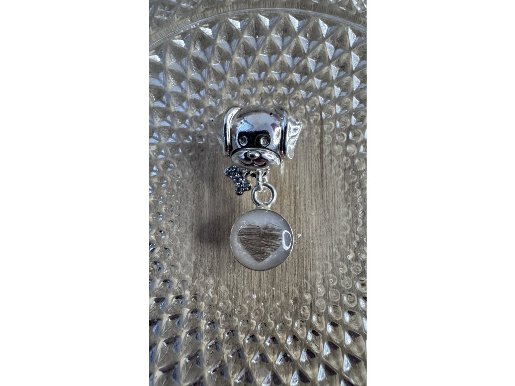 Přívěsek na pandoru- pejsek, s mateřským mlékem, vlásky nebo srstí